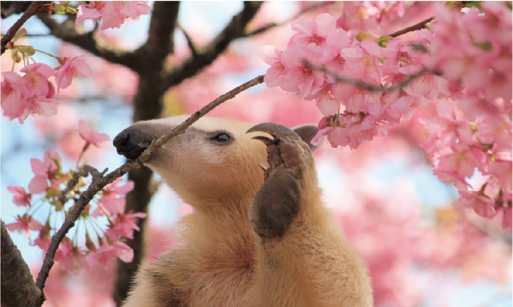 樹上性のアリクイがサクラの花道をお散歩します。