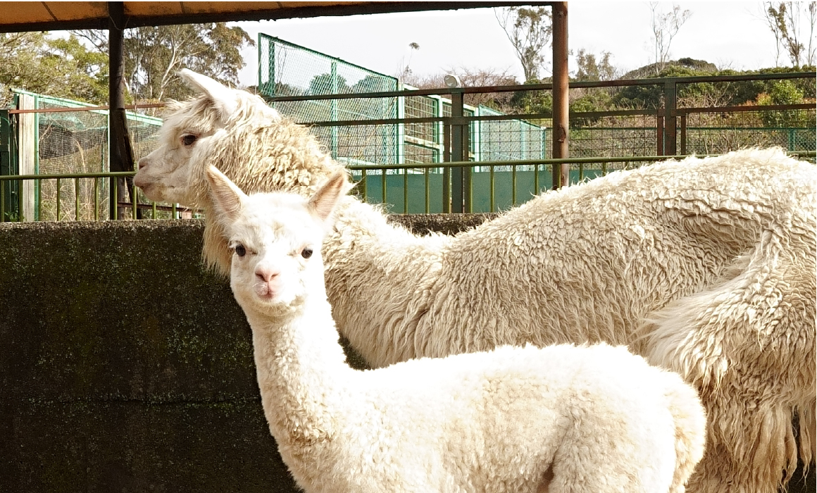 癒し系動物の代表格アルパカのモフモフしている毛をさわることができます。