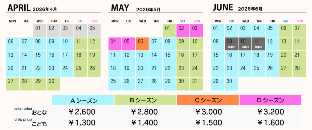 ※新しい入園料金につきましては、下記料金表をご確認ください。